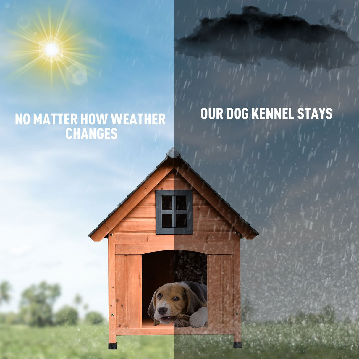 Easycomfort Casetta Rialzata per Cani fino a 15 kg, Cuccia per Cani Gatti da Esterno in Legno di Abete, 81.3x91.5x98.5 cm