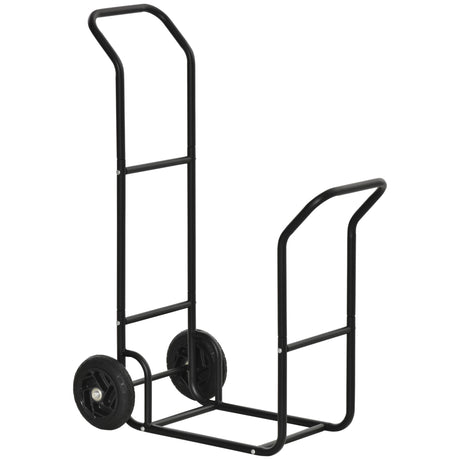 Easycomfort Carrello Portalegna in Acciaio con 2 Ruote per Interno ed Esterno, 77x42x105cm, Nero