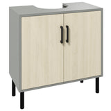 Easycomfort Mobile Bagno sottolavabo con Doppia anta e ripiano in Truciolato, 60x30x60cm, Grigio e color Quercia