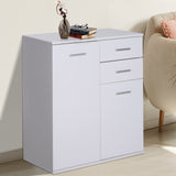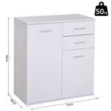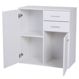 EASYCOMFORT Mobiletto Cassettiera 2 Cassetti 2 Ante con Ripiano Regolabile in Legno, Bianco, 71x35x76cm
