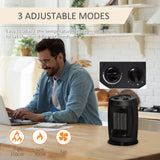 Easycomfort Stufetta Elettrica Ceramica Oscillante a 60°, Aria e Temperatura Regolabili 6-38°C, Potenza 900W/1500W, 19.5x14.8x28cm, Nero