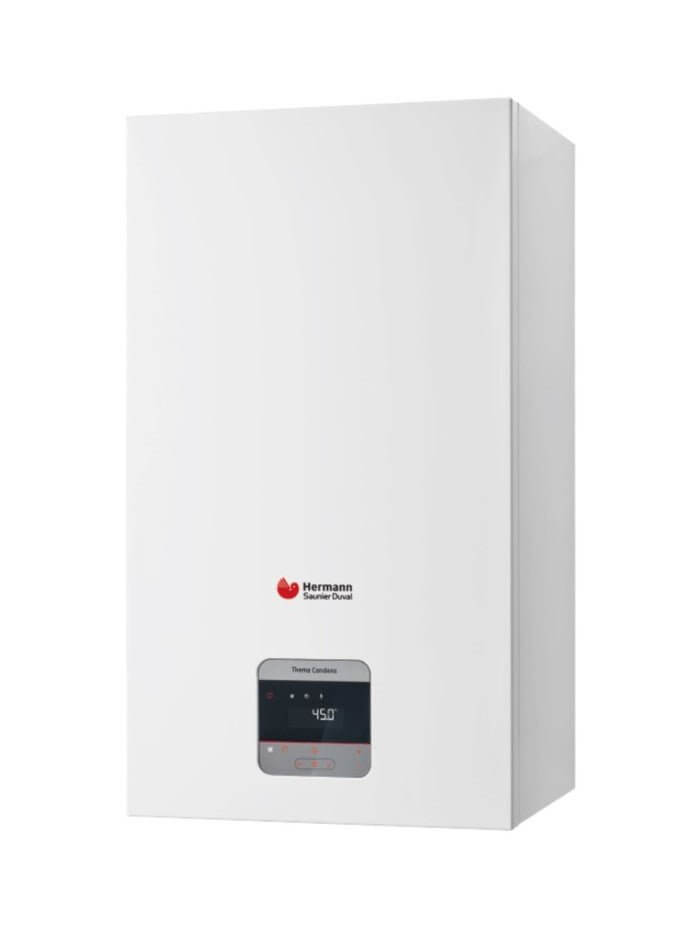 Il preriscaldo del circuito primario, e quindi anche dello scambiatore secondario a piastre in acciaio Inox, assicura infatti un’istantanea risposta della caldaia a ogni repentina richiesta di acqua calda sanitaria. Thema Condens è disponibile in tre taglie di potenza: alle versioni da 25 e 30 kW si aggiunge la nuova taglia da 35 kW, tutte con alimentazione a metano ma covertibili a propano tramite semplice regolazione elettronica, senza necessità di alcun kit di trasformazione. La gamma si arricchisce inoltre di una nuova soluzione: la versione SB (solo riscaldamento) da 25, 30 e 35 kW, abbinabile a qualsiasi bollitore Hermann Saunier Duval. Anche le nuove caldaie SB si presentano con alimentazione a metano, ma trasformabili a propano commerciale elettronicamente.